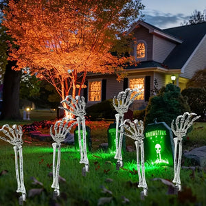 Add a spooky touch to your Halloween with this 6-piece skeleton hand decoration set, perfect for gardens, graveyard-themed parties, and outdoor setups. Made of durable plastic, these realistic skeleton hands easily stake into the ground. No electricity or batteries required simple, sturdy, and long-lasting.