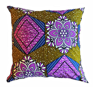 Add a global design aesthetic to your space with these beautiful purple, olive green and navy blue African print fabric pillow cover. Our cover are handmade in Ghana with quality Ankara fabrics known to add a level of worldly sophistication to your home.