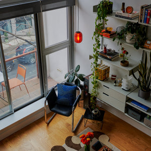 The Allium Pendant is a plug-in, renter-friendly style, featuring an extra long cord and two brass swags for easy install and variable configuration.