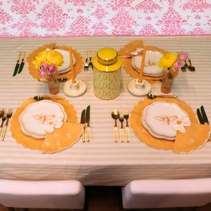 A solitary bumblebee, intricately sketched, claims a central place on a white scalloped plate. Whether it's a sunlit breakfast or a candlelit dinner, this plate - a prelude to the 'Bumble Voyage' dinner plate - brings a touch of summer's fleeting beauty and the tireless dance of the bumblebees.