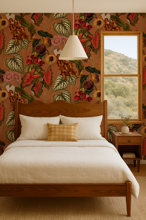 Transform your space into a luxe, tropical paradise with our Cali Tropicale Wallpaper. Designed by Samantha Santana, this burnt orange wallpaper features a stunning collage of vintage botanical illustrations. Its versatile installation options - peel and stick vinyl or traditional pasted - make it easy to customize and remove. Elevate your decor today.