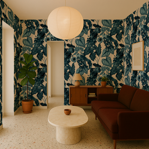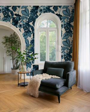 Transform your space into a luxe, tropical paradise with our Cali Tropicale Wallpaper. Designed by Samantha Santana, this off-white and blue wallpaper features a stunning collage of vintage botanical illustrations. Its versatile installation options - peel and stick vinyl or traditional pasted - make it easy to customize and remove. Elevate your decor today.