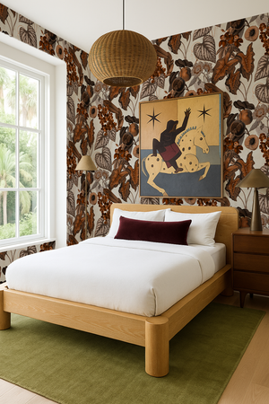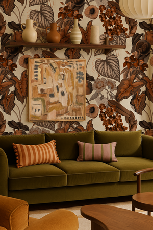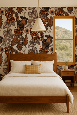 Transform your space into a luxe, tropical paradise with our Cali Tropicale Wallpaper. Designed by Samantha Santana, this off-white and burnt orange wallpaper features a stunning collage of vintage botanical illustrations. Its versatile installation options - peel and stick vinyl or traditional pasted - make it easy to customize and remove. Elevate your decor today.