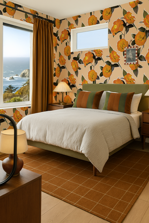 Transform your space with the beautiful Camellia Wallpaper, designed by artist Samantha Santana. The intricately detailed artwork is created from photos of camellias picked straight from her backyard. With both peel and stick vinyl and traditional pasted options, installation is a breeze. Plus, the wallpaper is completely removable, making it a versatile and easy choice for any room.