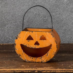 Introducing the HAPPY JACK O LANTERN METAL BUCKET - the perfect addition to your Halloween décor! Made of sturdy metal, this bucket features a cheerful Jack o' Lantern design that will bring a festive touch to any room. Use it to hold candy, treats, or even as a fun centerpiece for your Halloween party!