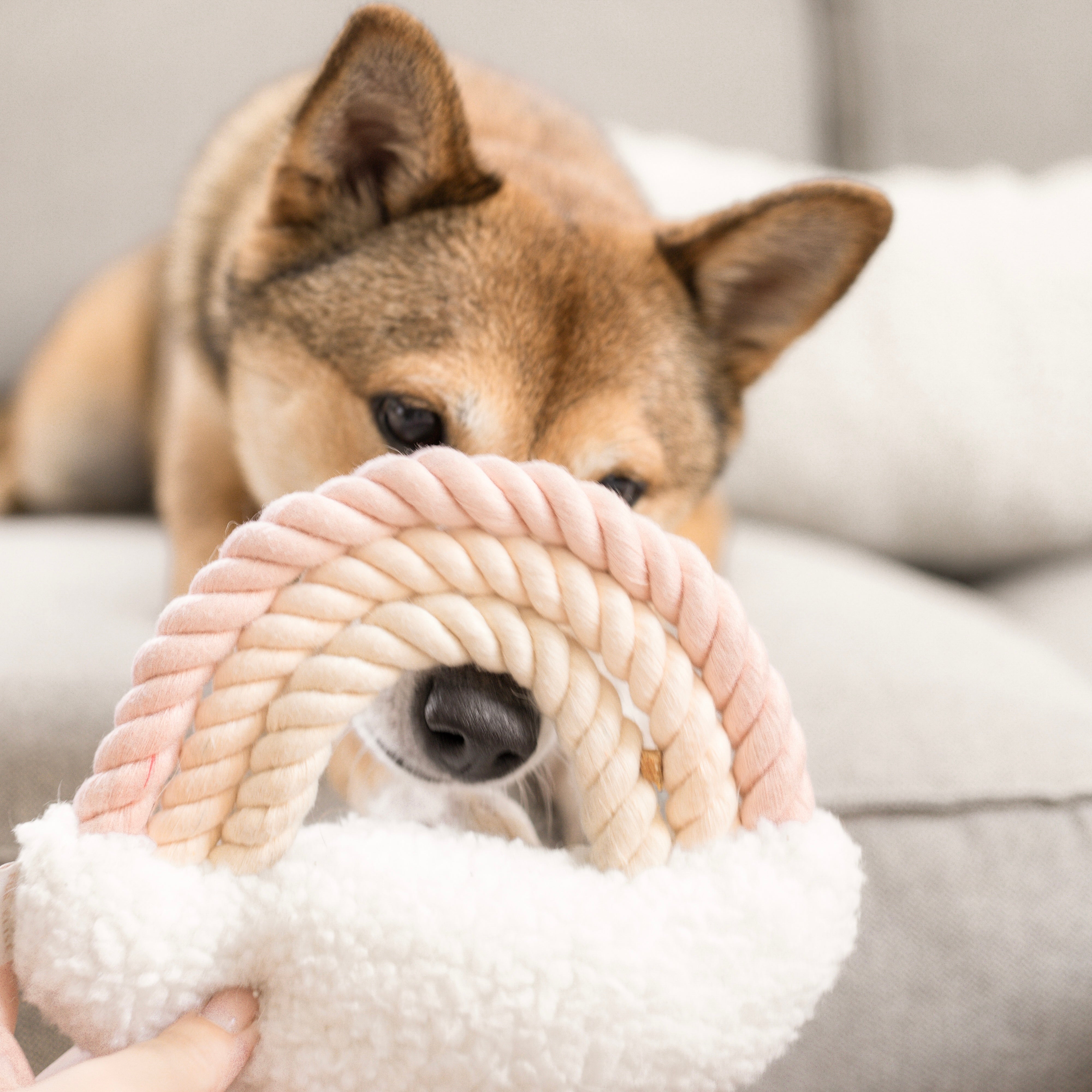 Meet the Iris Plushie—a dreamy blend of play and comfort for your furry friend. Named after the Latin word for "rainbow," this enchanting toy features pastel cotton ropes perfect for tug-of-war and teething pets who love to chew. The soft sherpa cloud is packed with crinkle paper and squeaky balls, keeping playtime exciting for hours. Sized just right for most pets, it’s the perfect companion to keep their head in the clouds—while you tackle your to-do list.