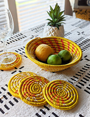 Large Yellow Woven African Basket