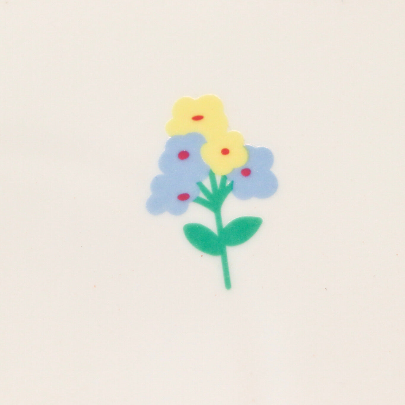 Sporadically sprinkled bouquets of periwinkle and sunflower-yellow blossoms, reminiscent of a meadow in full bloom, finished with a pastel blue scalloped rim, evoking hints of classic Italian and French ceramics. It's a modern nod to beloved European styles, perfect for the main course.