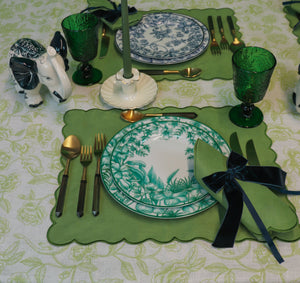 From our Shimla Social Collection, the Monsoon Verdant Starter Plate in a radiant verdant hue pays tribute to the majestic gardens of old Indian estates. If you look closely enough, you may even be able to spot an Indian Tiger lurking around. Can be matched with Shimla Social coordinating pieces to create a complete place setting.
