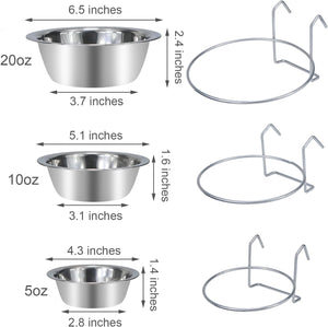 Pet Bowl Stainless Steel Hanging Food Water Bowls Bird Cage Feeder for Birds, Parrots, Small Sized Dogs and Cats (S)
