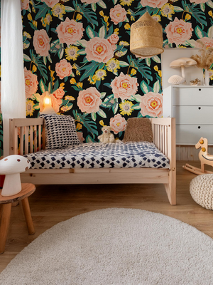 Artwork painted by Samantha Santana, inspired by vintage wall coverings and her time as a florist.