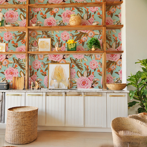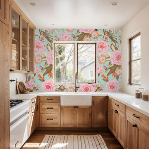 Posh Posy Wallpaper, light blue