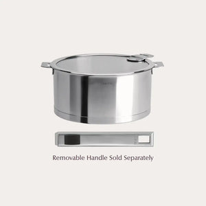 Thanks to the efficiency of their CRISTEL® L Shape thermo-diffuser base, compatible with induction, the Strate®Detachable handle system fits all kitchen sizes and will be a valuable ally for all your culinary preparations. Practical, the detachable handle system makes it possible to transform your stainless steel vessel into a serving dish by replacing the long handle with short handles.