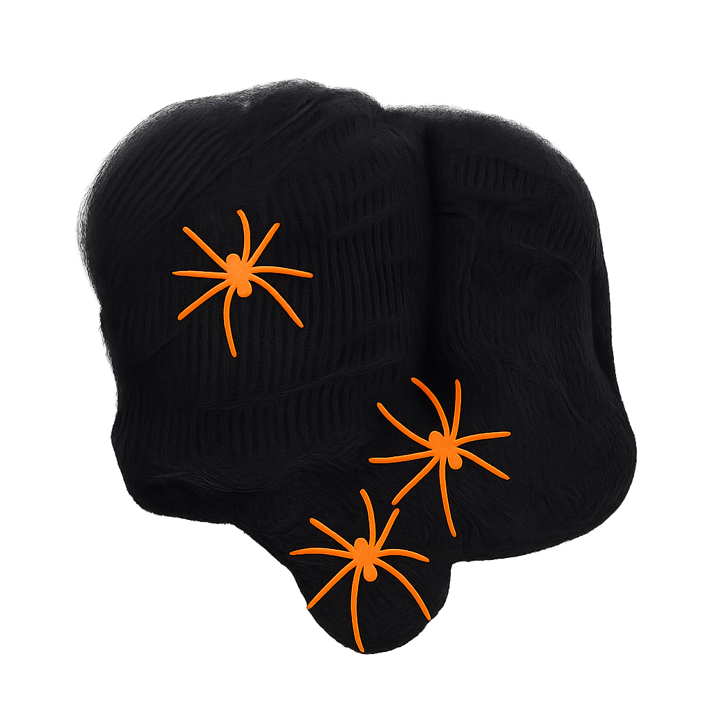 This set includes 200 sq ft (approx. 18.5 m²) of stretchy spider web and 100 fake spiders. Made of durable, flexible material, it perfectly mimics real spider webs and is suitable for both indoor and outdoor use. Ideal for decorating your garden, front door, parties, or haunted house setups. No electricity required – simply stretch and arrange it wherever you want.