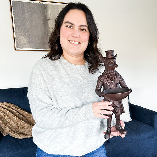With its refined silhouette and luxurious finish, the Dapper Standing Fox Bronze Bowl is more than just decor—it's a conversation piece that brings charm and elegance to your home.
