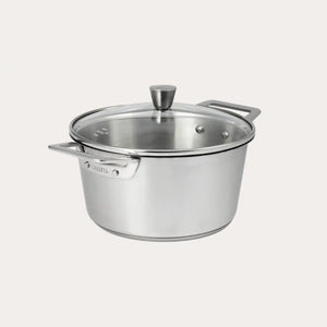 Its ergonomic handles, firmly riveted to the body of the pan are heat-resistant and ensure an excellent grip with no risk of burns for guaranteed safety in the kitchen. Their polished stainless steel finish contrasts nicely with the brushed finish of the pot.~