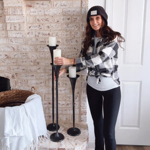 Your home decor is about to get a whole lot more dramatic! If you've ever looked at a beautifully styled space and wondered how they created so much romance, height, and wow factor, we've got the secret! And it's here for only a limited time! Our Tall Flared Black Iron Candle Holders are BACK and at a Special Steal Price!