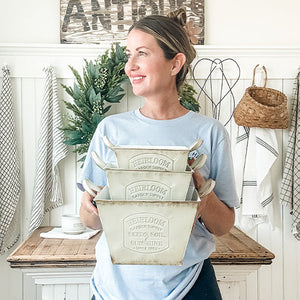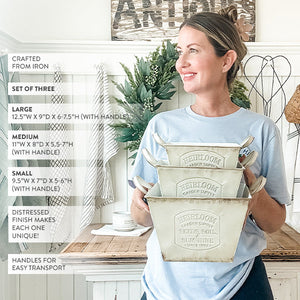 Vintage Inspired Heirloom Garden Supply Metal Planters, Set of Three