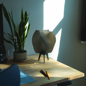 We're so excited to present the Zephyr lamp — our first foray into human/AI design collaboration. We began by taking the Wavy Lamp as the basis for further experimentation. Through a back and forth process of prompting the AI and making modifications by hand, we were able to generate a wide variety of forms and textures. The forms we then rebuilt by hand and applied the generated textures to the forms (we showed a little bit of this BTS in this reel).